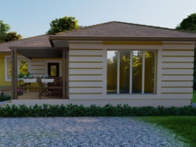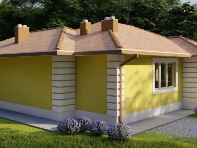Проект Бунгало представляет собой одноэтажный практичный и уютный дом с крытой террасой. Он предлагает отличное сочетание комфорта, эстетики и экономичности.