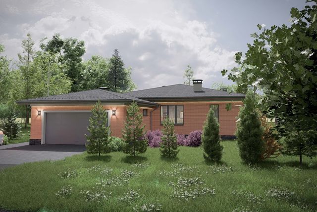 Дом по проекту «Milan» представляет собой выгодный компактный одноэтажный дом с угловым окном в кухне.