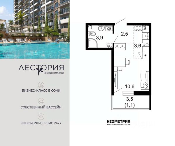 Продается квартира в ЖК "Флора" от федерального девелопера "Неометрия". Это жилой комплекс комфорт-класса в самом зеленом районе Сочи. При проектировании постарались максимально сохранить окружающую флору и фауну. Теплое море, горы, целебные источники, река, близость заповедника все это уже рядом с вами. Жилой комплекс "Флора" это: • 4,5 Га благоустроенной территории от дизайн-бюро Cora * 7 минут до моря на машине • Современные экологичные детские площадки от бренда "Тайга" • Яркие аллеи с цветниками и кустарниками для прогулок и утренних пробежек • Благоустроенная набережная с шезлонгами и перголами • Спортивные зоны для любителей пляжного волейбола, бадминтона и йоги - лапомоечные и колясочные в каждом подъезде - подземный паркинг на 429 мест Собственная управляющая компания с функцией "доверительного управления" Кудепста это прекрасный зеленый оазис, который расположился между историческим центром Сочи и Адлером. Благодаря выгодному местоположению ЖК "Флора" между курортным Адлером и центром Сочи до самых популярных социальных, культурных и развлекательных объектов города можно добраться за считанные минуты: Олимпийский парк. Красная Поляна, аэропорт, жд-вокзал. Кроме того, в шаговой доступности расположена вся необходимая социальная инфраструктура, что удобно для жизни всех членов семьи: • 2 школы; • 3 детских сада; • 3 поликлиники; • 2 фитнес-центра; • 3 магазина и гипермаркета; • спортивная школа • 2 остановки общественного транспорта. На первых этажах комплекса расположены коммерческие помещения пункты выдачи маркетплейсов, кофейни, магазины. В жилом комплексе соблюден принцип сбалансированных и эргономичных планировочных решений: от компактных студий до просторных семейных квартир. В каждой квартире есть балкон, и установлены увеличенные оконные рамы. На 12 этаже повышенной комфортности открываются потрясающие виды на море и национальный парк благодаря панорамному остеклению лоджий. Квартиру можно купить с черновой отделкой или с готовым ремонтом "Прайм", а также с сертификатом на покупку мебели. Приобрести квартиру можно за наличную оплату, в ипотеку, с привлечением средства маткапитала. Продам 1-комнатную квартиру 20 м2 (квадратных метров) в Сочи.