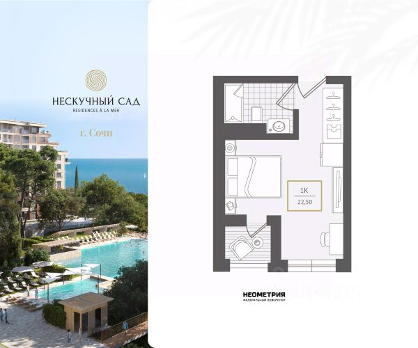 Нескучный сад Rsidences la mer — авторский курорт с атмосферой французской Ривьеры, где каждый день как увлекательное путешествие. Курортный комплекс Нескучный сад создан для тех, кто путешествует по миру в поисках идеального места, где можно замедлиться, ощутить жизнь всеми органами чувств, чувствовать заботу и премиальный сервис. Неометрия создала подобное пространство здесь — в сердце Сочи. Премиальный курорт имеет официальный статус пятизвездочного отеля, реализуется по ФЗ-214 с использованием эскроу-счетов. Состоит из многоуровневой приватной территории 4,5 га, пяти садов чувств, уникального парящего променада 1,3 га, ведущего к морю, и собственного концептуального пляжа. Камерная локация Курорт расположен в Адлерском районе Центрального Сочи, между морем и горами. Место выбрано не случайно и подчеркивает ценность замедления в центре динамичной жизни. Чтобы оградить вас от шума и суеты, Нескучный сад скрыт в объятиях реликтового парка. Находясь в сердце золотого треугольника Сочи - 10 минутах до международного аэропорта, 15 минутах до Олимпийского парка и 45 минутах до Горнолыжного курорта Роза Хутор и Красной Поляны, вы получаете долгожданную приватность и ощущение загородной жизни. Прогулка до собственного пляжа - 450 шагов незабываемых ощущений по уникальному парящему променаду между верхушек пицундских сосен и платанов. В вашем распоряжении инфраструктура собственного курорта Каждая деталь в Rsidences la mer продумана и настроена на волну удовольствий: пул концептуальных ресторанов, подогреваемые бассейны, два уровня wellness & SPA, детские плей хабы и развивающий центр, воркауты в окружении зелени и деловой-кластер делают Нескучный сад достойным выбором для самой взыскательной аудитории. Безукоризненный сервис пятизвездочного отеля Попадая в Нескучный сад, ощущаешь себя гостем фешенебельного отеля valet parking, cleaning Focus, деликатный консьерж-сервис освобождает от рутины, фрахтует яхты для морской прогулки, электронно регистрирует ваших гостей, рекомендует лучшие маршруты путешествий для знакомства с аутентичной культурой, локальной гастрономией, легендами и традициями Сочи, забронирует лучший столик в одном из ресторанов. Любимые блюда прямо в вашу резиденцию доставит flashbot робот. Личныи помощник предугадывает желания и заботится о том, чтобы вы отдыхали, а ваши активы росли.