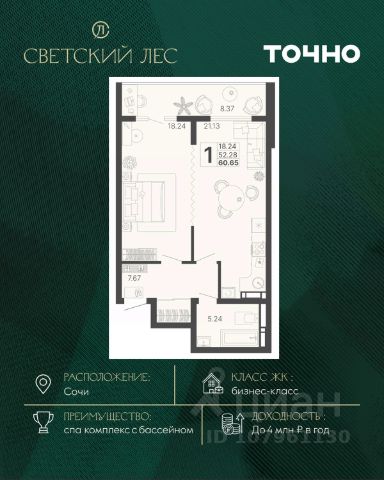 Жилой комплекс состоит из 7 домов переменной этажности от 11 до 20 этажей. В холлах и вестибюлях выполнена дизайнерская отделка, установлены скоростные лифты. На 1 этажах расположены зоны ожидания и колясочные. В проекте предложено множество планировочных решений: в наличии квартиры классического типа. Сдаются они с подчистовой отделкой, панорамными окнами и высотой потолков в 3м. Некоторые квартиры имеют вид на лесной массив и горы. На закрытой территории комплекса выполнен ландшафтный дизайн, установлены безопасные детские площадки для детей всех возрастов, места для отдыха, зоны барбекю с беседками, спортивные площадки, установлен открытый бассейн. На территории также оборудована своя набережная протяженностью в 1,2км. Для владельцев автомобилей предусмотрен отдельный многоуровневый паркинг. Жилой комплекс располагается в активно развивающемся Хостинском районе. В нескольких минутах ходьбы находятся поликлиники, школы, детские сады, кинотеатр, магазины и кафе. До центра Сочи можно добраться за 30 минут транспортом.