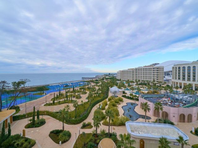 Инфраструктура комплекса — одна из самых сильных на побережье: 11 бассейнов, из них 8 с морской водой (часть подогреваемые), включая открытые и крытые зоны, масштабный SPA-комплекс, современный фитнес-центр, 8 ресторанов и баров, конференц-центр на 1200 человек, лаунж-пространства, консьерж-сервис 24/7, подземный паркинг, охрана и закрытая благоустроенная территория площадью 6 гектаров. Около 80% территории занимает ландшафтное озеленение, создающее атмосферу приватного курорта. Номерной фонд — более 400 апартаментов.