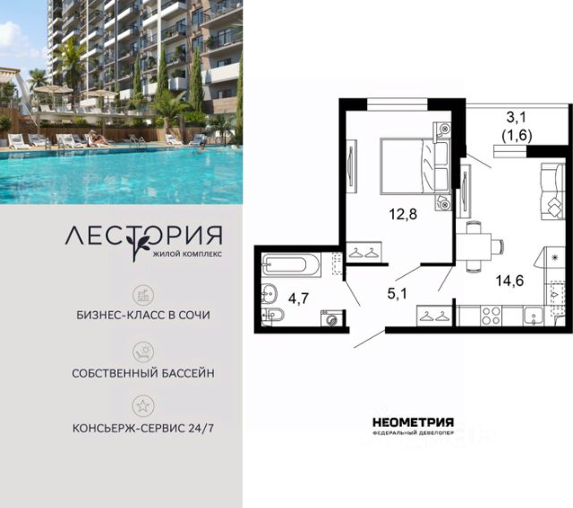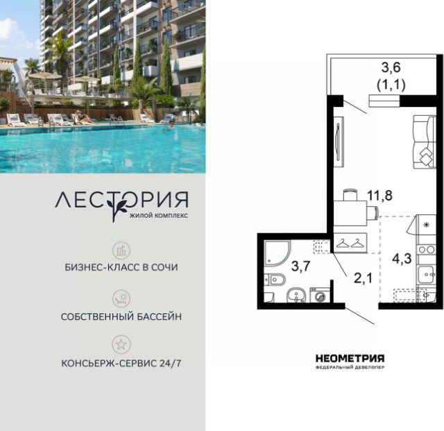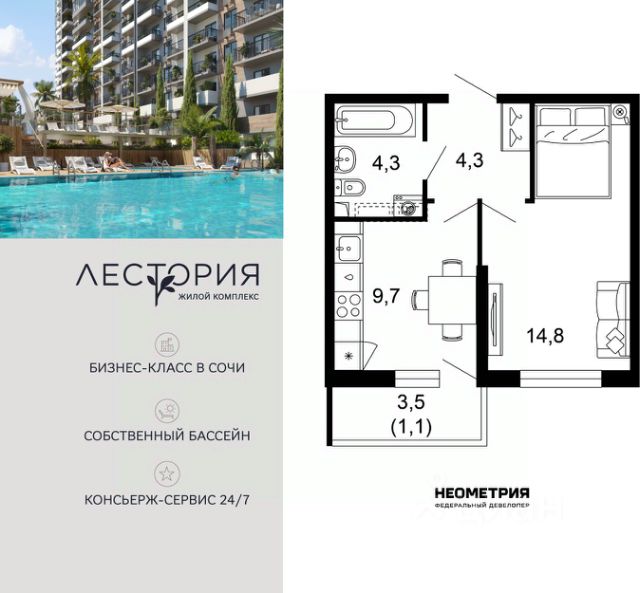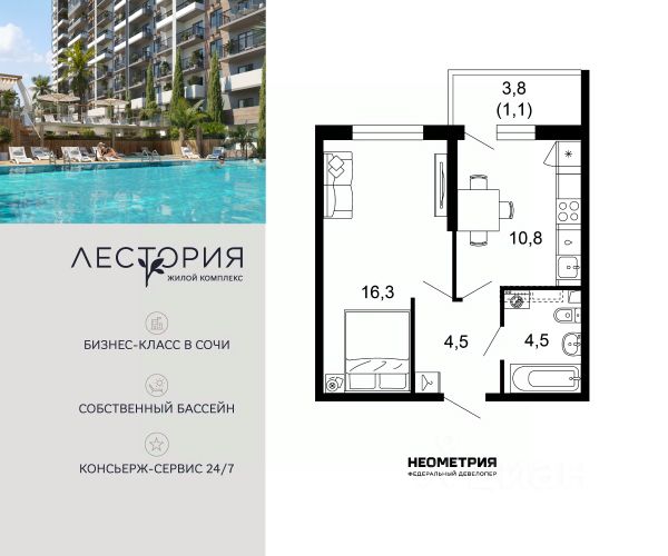 - Хорошая транспортная развязка — легко добраться в любую точку города, до аэропорта и до ж/д вокзала Адлера ;