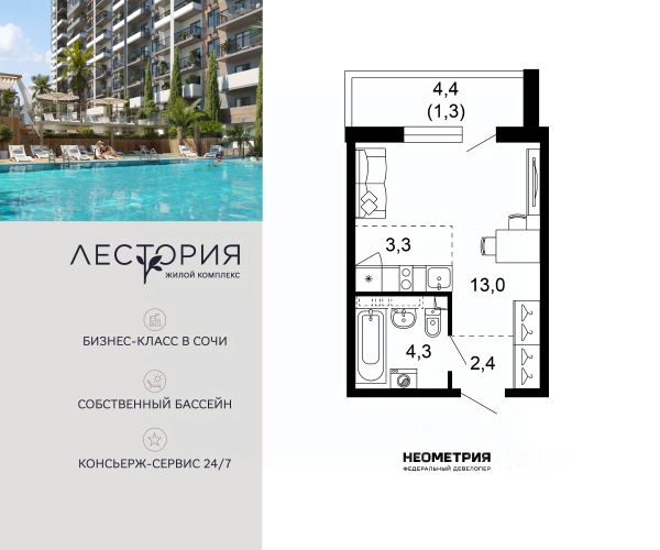 Проект включает в себя 7 жилых корпусов высотой 12 этажей. В подъездах выполнена дизайнерская отделка в светлой цветовой гамме с яркими акцентами, для удобства жителей в местах общего пользования предусмотрена навигация. В каждой секции предусмотрены помещения для хранения велосипедов и колясок с обустроенным местом для мойки колес и лап домашних животных. Покупателям в ЖК предложено множество планировочных решений: в наличии квартиры, как классического типа, так и европланировки. Из окон открываются виды на реку и горы. Квартиры сдаются без отделки. В состав комплекса входит школа на 2 000 мест, детский сад на 550 мест и фитнес-центр. На первых этажах расположены коммерческие помещения. Во дворах установлены детские площадки, спортивные комплексы и деревянные беседки для отдыха. По периметру ЖК ведется видеонаблюдение, к которому можно подключится online при помощи специального приложения для мобильных устройств. Рядом с комплексом располагается благоустроенная набережная реки Кудепста. Комплекс расположен в микрорайоне Кудепста города Сочи. В окрестностях района находится большая плантация пробкового дуба. В пешей доступности есть школы, детские сады, магазины, медучреждения, салоны красоты и места для отдыха. Комплекс расположен в 1,9 км от моря, и 7 км до Сочи.
