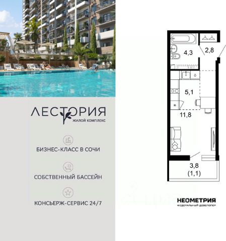 Проект включает в себя 7 жилых корпусов высотой 12 этажей. В подъездах выполнена дизайнерская отделка в светлой цветовой гамме с яркими акцентами, для удобства жителей в местах общего пользования предусмотрена навигация. В каждой секции предусмотрены помещения для хранения велосипедов и колясок с обустроенным местом для мойки колес и лап домашних животных. Покупателям в ЖК предложено множество планировочных решений: в наличии квартиры, как классического типа, так и европланировки. Из окон открываются виды на реку и горы. Квартиры сдаются без отделки. В состав комплекса входит школа на 2 000 мест, детский сад на 550 мест и фитнес-центр. На первых этажах расположены коммерческие помещения. Во дворах установлены детские площадки, спортивные комплексы и деревянные беседки для отдыха. По периметру ЖК ведется видеонаблюдение, к которому можно подключится online при помощи специального приложения для мобильных устройств. Рядом с комплексом располагается благоустроенная набережная реки Кудепста. Комплекс расположен в микрорайоне Кудепста города Сочи. В окрестностях района находится большая плантация пробкового дуба. В пешей доступности есть школы, детские сады, магазины, медучреждения, салоны красоты и места для отдыха. Комплекс расположен в 1,9 км от моря, и 7 км до Сочи. Продается 1-комнатная квартира на 1 этаже в Сочи.