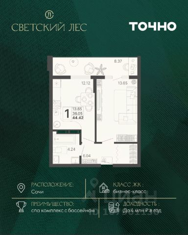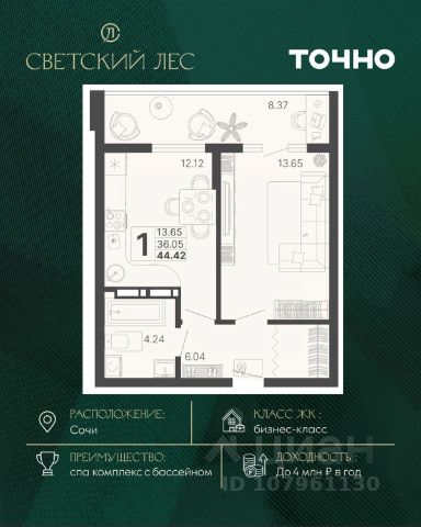 Жилой комплекс состоит из 7 домов переменной этажности от 11 до 20 этажей. В холлах и вестибюлях выполнена дизайнерская отделка, установлены скоростные лифты. На 1 этажах расположены зоны ожидания и колясочные. В проекте предложено множество планировочных решений: в наличии квартиры классического типа. Сдаются они с подчистовой отделкой, панорамными окнами и высотой потолков в 3м. Некоторые квартиры имеют вид на лесной массив и горы. На закрытой территории комплекса выполнен ландшафтный дизайн, установлены безопасные детские площадки для детей всех возрастов, места для отдыха, зоны барбекю с беседками, спортивные площадки, установлен открытый бассейн. На территории также оборудована своя набережная протяженностью в 1,2км. Для владельцев автомобилей предусмотрен отдельный многоуровневый паркинг. Жилой комплекс располагается в активно развивающемся Хостинском районе. В нескольких минутах ходьбы находятся поликлиники, школы, детские сады, кинотеатр, магазины и кафе. До центра Сочи можно добраться за 30 минут транспортом.