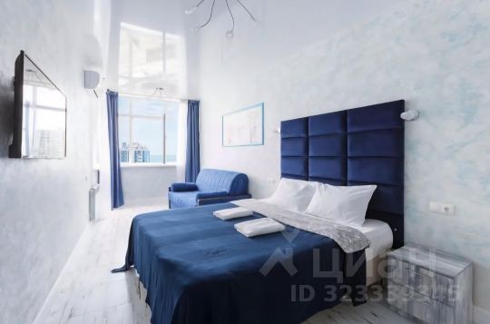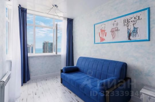 Квартира площадью 33 кв. м. Панорамное остекление, а также видовая лоджия квартиры - позволит насладиться незабываемым видом на море, и окрестности города Сочи. Вид на сторону морпорта и центра города. Самый красивый в доме.