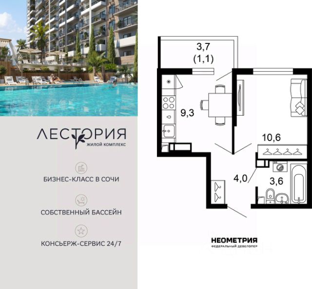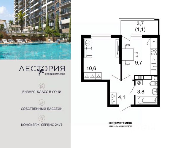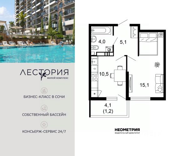Проект включает в себя 7 жилых корпусов высотой 12 этажей. В подъездах выполнена дизайнерская отделка в светлой цветовой гамме с яркими акцентами, для удобства жителей в местах общего пользования предусмотрена навигация. В каждой секции предусмотрены помещения для хранения велосипедов и колясок с обустроенным местом для мойки колес и лап домашних животных. Покупателям в ЖК предложено множество планировочных решений: в наличии квартиры, как классического типа, так и европланировки. Из окон открываются виды на реку и горы. Квартиры сдаются без отделки. В состав комплекса входит школа на 2 000 мест, детский сад на 550 мест и фитнес-центр. На первых этажах расположены коммерческие помещения. Во дворах установлены детские площадки, спортивные комплексы и деревянные беседки для отдыха. По периметру ЖК ведется видеонаблюдение, к которому можно подключится online при помощи специального приложения для мобильных устройств. Рядом с комплексом располагается благоустроенная набережная реки Кудепста. Комплекс расположен в микрорайоне Кудепста города Сочи. В окрестностях района находится большая плантация пробкового дуба. В пешей доступности есть школы, детские сады, магазины, медучреждения, салоны красоты и места для отдыха. Комплекс расположен в 1,9 км от моря, и 7 км до Сочи.
