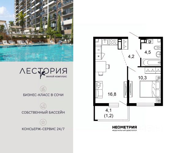 Продается квартира в жилом комплексе бизнес-класса "Лестория". В составе ЖК предусмотрена собственная аквазона площадью 473 квадратных метра с двумя подогреваемыми бассейнами, что соответствуют стандартам бизнес-класса. Аквазона объединяет взрослый и детский бассейны. В welcome-zone к услугам посетителей шезлонги и все необходимые принадлежности. Раздевалки с душевыми комнатами, инфракрасная сауна — здесь все предусмотрено для комфортного отдыха и полного расслабления. Для водного комплекса продуман отдельный вход, оборудованный системой контроля и управления доступом (СКУД). Аквазона только часть уникальной инфраструктуры "Лестории", которая включает в себя также благоустроенную территорию с пятьюдесятью функциональными зонами для прогулок, отдыха и занятий спортом, видовые террасы на крышах для отдыха, работы и встреч с друзьями, а также пространство набережной Кудепсты с шезлонгами и перголами. Жилой комплекс "Лестория" состоит из шести домов высотностью от 15 до 17 этажей, окружённых зеленым массивом национального парка. На придомовой территории для жителей предусмотрены закрытые дворы с круглосуточным видеонаблюдением, активити-центр для детей и подростков, тихие зоны для отдыха и медитации. На крышах домов будут созданы зеленые террасы для наслаждения прекрасными видами на море и горы. В проекте предусмотрены разные варианты отделки квартир под потребности покупателей. Тем, кто хочет воплотить в жизнь собственные интерьерные задумки, подойдут квартиры без ремонта. Для комфортной жизни и отдыха в комплексе будет работать круглосуточный консьерж-сервис уровня 5*, который с легкостью закроет все ежедневные потребности: от заказа продуктов и встречи гостей в аэропорту до выгула и дрессировки питомца. К услугам жителей ЖК "Лестория" — собственная управляющая компания, для инвесторов предоставляются услуги доверительного управления. #26AVOW