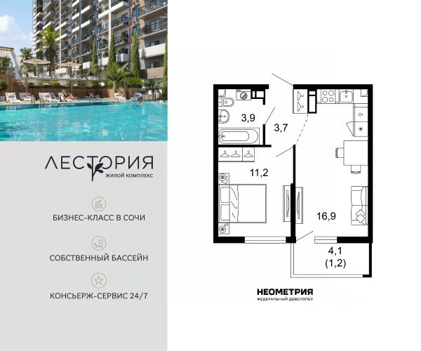 Продается квартира в жилом комплексе бизнес-класса "Лестория". В составе ЖК предусмотрена собственная аквазона площадью 473 квадратных метра с двумя подогреваемыми бассейнами, что соответствуют стандартам бизнес-класса. Аквазона объединяет взрослый и детский бассейны. В welcome-zone к услугам посетителей шезлонги и все необходимые принадлежности. Раздевалки с душевыми комнатами, инфракрасная сауна — здесь все предусмотрено для комфортного отдыха и полного расслабления. Для водного комплекса продуман отдельный вход, оборудованный системой контроля и управления доступом (СКУД). Аквазона только часть уникальной инфраструктуры "Лестории", которая включает в себя также благоустроенную территорию с пятьюдесятью функциональными зонами для прогулок, отдыха и занятий спортом, видовые террасы на крышах для отдыха, работы и встреч с друзьями, а также пространство набережной Кудепсты с шезлонгами и перголами. Жилой комплекс "Лестория" состоит из шести домов высотностью от 15 до 17 этажей, окружённых зеленым массивом национального парка. На придомовой территории для жителей предусмотрены закрытые дворы с круглосуточным видеонаблюдением, активити-центр для детей и подростков, тихие зоны для отдыха и медитации. На крышах домов будут созданы зеленые террасы для наслаждения прекрасными видами на море и горы. В проекте предусмотрены разные варианты отделки квартир под потребности покупателей. Тем, кто хочет воплотить в жизнь собственные интерьерные задумки, подойдут квартиры без ремонта. Для комфортной жизни и отдыха в комплексе будет работать круглосуточный консьерж-сервис уровня 5*, который с легкостью закроет все ежедневные потребности: от заказа продуктов и встречи гостей в аэропорту до выгула и дрессировки питомца. К услугам жителей ЖК "Лестория" — собственная управляющая компания, для инвесторов предоставляются услуги доверительного управления. #ZMAv9t