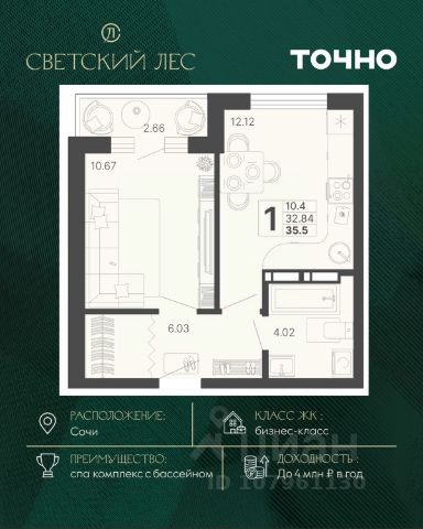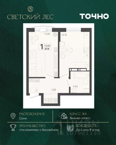 • ✓ В базе Циан 42 1-комнатных квартир на 12 этаже в микрорайоне КСМ в городе Сочи