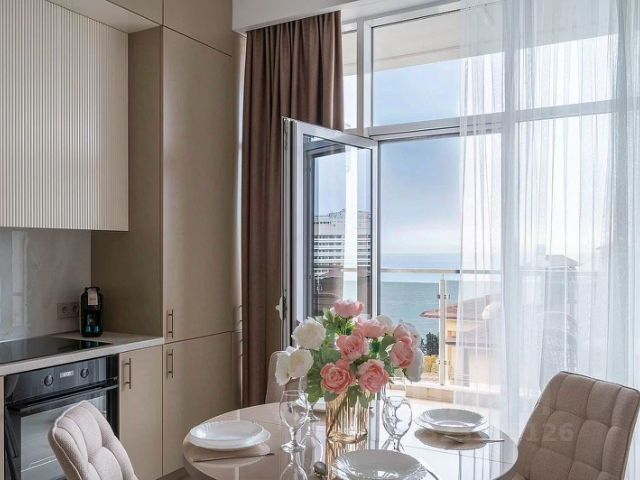 Это не просто евро-двушка. Это продуманное пространство для тех, кто ценит уединение, свет и безупречный вкус. Просторная кухня-гостиная, из которой вы выходите прямо на собственную террасу — место, где можно завтракать под шум волн, устраивать ужины под звёздами или просто сидеть в тишине, наблюдая, как море меняет оттенки от рассвета до заката. Отдельная спальня обеспечивает полное уединение, а высокие потолки и панорамные окна наполняют интерьер воздухом и светом.