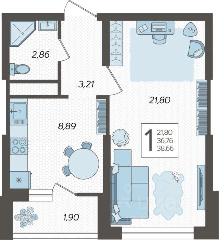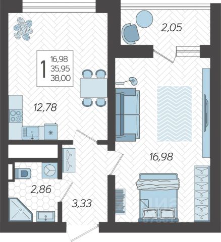 В продаже 1-комнатная квартира, площадью 38.9, расположенная Литер 1 жилого комплекса бизнес-класса "Кислород". Комплекс от девелопера AVA находится в Сочи, на северном склоне горы Бытха, в 7 минутах езды от центра города.