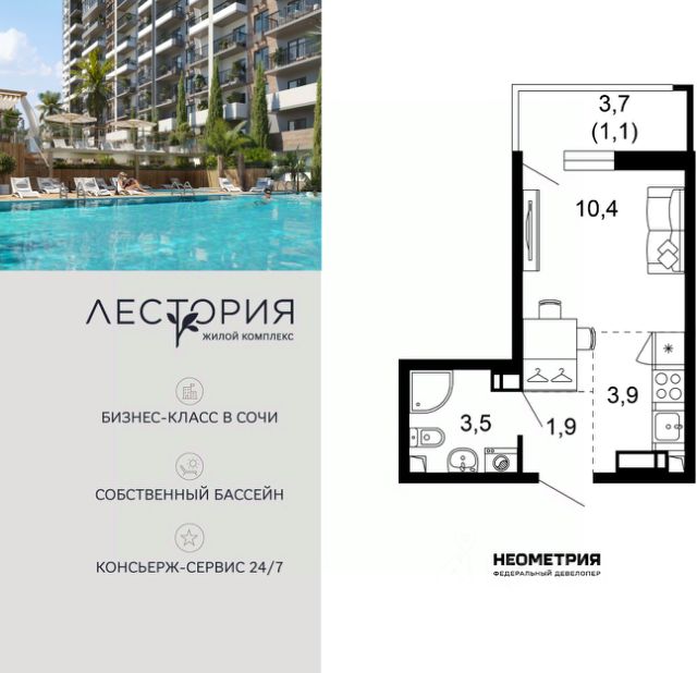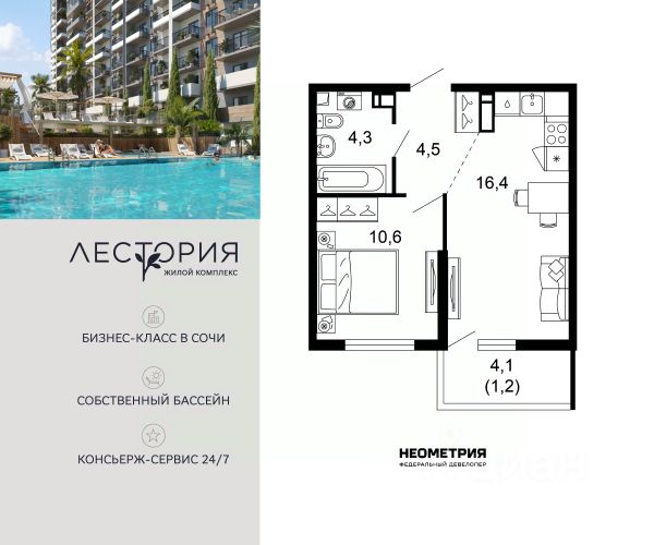 Продается квартира в жилом комплексе бизнес-класса "Лестория". В составе ЖК предусмотрена собственная аквазона площадью 473 квадратных метра с двумя подогреваемыми бассейнами, что соответствуют стандартам бизнес-класса. Аквазона объединяет взрослый и детский бассейны. В welcome-zone к услугам посетителей шезлонги и все необходимые принадлежности. Раздевалки с душевыми комнатами, инфракрасная сауна — здесь все предусмотрено для комфортного отдыха и полного расслабления. Для водного комплекса продуман отдельный вход, оборудованный системой контроля и управления доступом (СКУД). Аквазона только часть уникальной инфраструктуры "Лестории", которая включает в себя также благоустроенную территорию с пятьюдесятью функциональными зонами для прогулок, отдыха и занятий спортом, видовые террасы на крышах для отдыха, работы и встреч с друзьями, а также пространство набережной Кудепсты с шезлонгами и перголами. Жилой комплекс "Лестория" состоит из шести домов высотностью от 15 до 17 этажей, окружённых зеленым массивом национального парка. На придомовой территории для жителей предусмотрены закрытые дворы с круглосуточным видеонаблюдением, активити-центр для детей и подростков, тихие зоны для отдыха и медитации. На крышах домов будут созданы зеленые террасы для наслаждения прекрасными видами на море и горы. В проекте предусмотрены разные варианты отделки квартир под потребности покупателей. Тем, кто хочет воплотить в жизнь собственные интерьерные задумки, подойдут квартиры без ремонта. Для комфортной жизни и отдыха в комплексе будет работать круглосуточный консьерж-сервис уровня 5*, который с легкостью закроет все ежедневные потребности: от заказа продуктов и встречи гостей в аэропорту до выгула и дрессировки питомца. К услугам жителей ЖК "Лестория" — собственная управляющая компания, для инвесторов предоставляются услуги доверительного управления. #zmFCEe