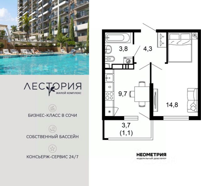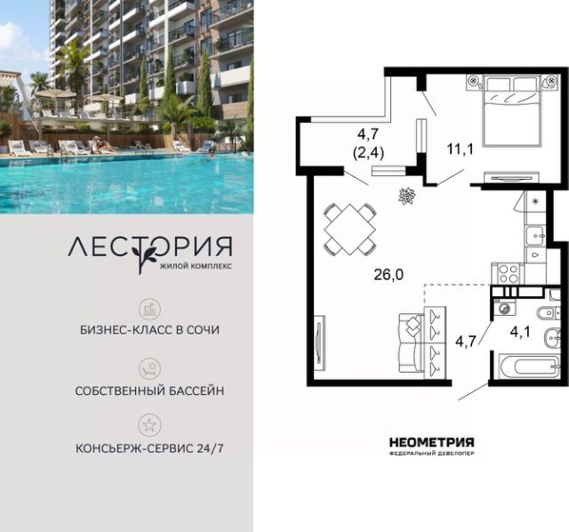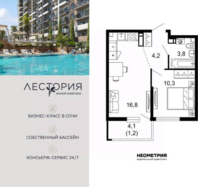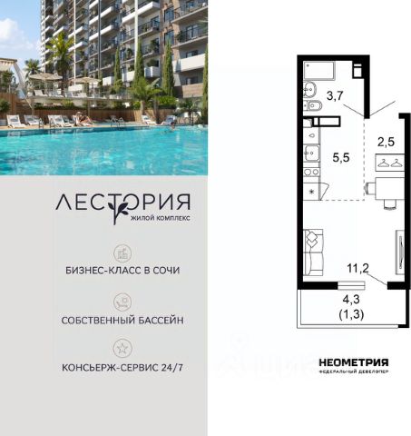 Продается квартира в жилом комплексе бизнес-класса "Лестория". В составе ЖК предусмотрена собственная аквазона площадью 473 квадратных метра с двумя подогреваемыми бассейнами, что соответствуют стандартам бизнес-класса. Аквазона объединяет взрослый и детский бассейны. В welcome-zone к услугам посетителей шезлонги и все необходимые принадлежности. Раздевалки с душевыми комнатами, инфракрасная сауна — здесь все предусмотрено для комфортного отдыха и полного расслабления. Для водного комплекса продуман отдельный вход, оборудованный системой контроля и управления доступом (СКУД). Аквазона только часть уникальной инфраструктуры "Лестории", которая включает в себя также благоустроенную территорию с пятьюдесятью функциональными зонами для прогулок, отдыха и занятий спортом, видовые террасы на крышах для отдыха, работы и встреч с друзьями, а также пространство набережной Кудепсты с шезлонгами и перголами. Жилой комплекс "Лестория" состоит из шести домов высотностью от 15 до 17 этажей, окружённых зеленым массивом национального парка. На придомовой территории для жителей предусмотрены закрытые дворы с круглосуточным видеонаблюдением, активити-центр для детей и подростков, тихие зоны для отдыха и медитации. На крышах домов будут созданы зеленые террасы для наслаждения прекрасными видами на море и горы. В проекте предусмотрены разные варианты отделки квартир под потребности покупателей. Тем, кто хочет воплотить в жизнь собственные интерьерные задумки, подойдут квартиры без ремонта. Для комфортной жизни и отдыха в комплексе будет работать круглосуточный консьерж-сервис уровня 5*, который с легкостью закроет все ежедневные потребности: от заказа продуктов и встречи гостей в аэропорту до выгула и дрессировки питомца. К услугам жителей ЖК "Лестория" — собственная управляющая компания, для инвесторов предоставляются услуги доверительного управления. #ZT0EZZ
