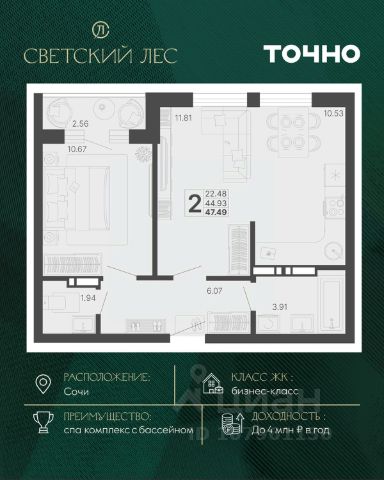 Жилой комплекс "Чайные холмы" - идеальное место для тех, кто ищет спокойствие, красоту и гармонию в окружении природы. Расположенный в курортной зоне Черноморского побережья, в пгт Дагомыс, этот жилой комплекс предлагает уникальное сочетание красивых пейзажей и экологической чистоты. Архитектурные решения зданий жилого комплекса поражают своей элегантностью и сдержанной красотой. ЖК включает в себя 8 монолитных домов переменной этажности от 15 до 16 этажей. Строгие формы линий внешнего вентилируемого фасада в сочетании со светлыми поверхностями стен создают атмосферу изысканности и эстетической привлекательности. А вечером при включенной подсветке жилой комплекс выглядит невероятно утонченно и стильно. Жилой комплекс является настоящим уголком рая. Это непревзойденный уровень комфорта и качества жизни. Свежий воздух, прекрасные виды на чайные плантации, море и горы - все это станет вашим ежедневным спутником. Вы просыпаетесь с чувством благодатного места, где природа воплощена в каждой детали. Все квартиры представлены со свободной планировкой, что позволит воплотить ваши самые смелые архитектурные и дизайнерские идеи. Высокие потолки 2,95 м создают атмосферу простора и свободы. В ЖК предусмотрено дистанционное управление шлагбаумом, круглосуточное видеонаблюдение и консьерж-сервис, которые обеспечат вам ощущение безопасности и спокойствия. Четырехуровневый паркинг на 565 мест и автостоянка на закрытой территории, предоставляющая более 130 мест для автовладельцев. На территории также располагается 3-х этажное здание дополнительного образования, где ваши дети смогут получить качественное образование. Тренажеры и воркаут зоны для поддержания физической формы и здоровья, а также 6 детских площадок и 2 спортивные площадки для активного отдыха и занятий спортом. ЖК "Чайные Холмы" предлагает широкий выбор инфраструктуры для вашего удобства. Рядом с комплексом расположены детские сады, школы, магазины, аптеки и рынок - все, что необходимо для полноценной жизни. А до одного из самых лучших пляжей Сочи, который носит международный знак качества "Голубой Флаг", всего 3 километра пешком по живописной набережной протяженностью более 1 километра, оборудованной скамейками с навесами. Не упустите возможность приобрести свое идеальное жилье! Обратитесь к нам прямо сейчас, и наши специалисты ответят на все ваши вопросы и помогут подобрать лучшие планировочные решения.