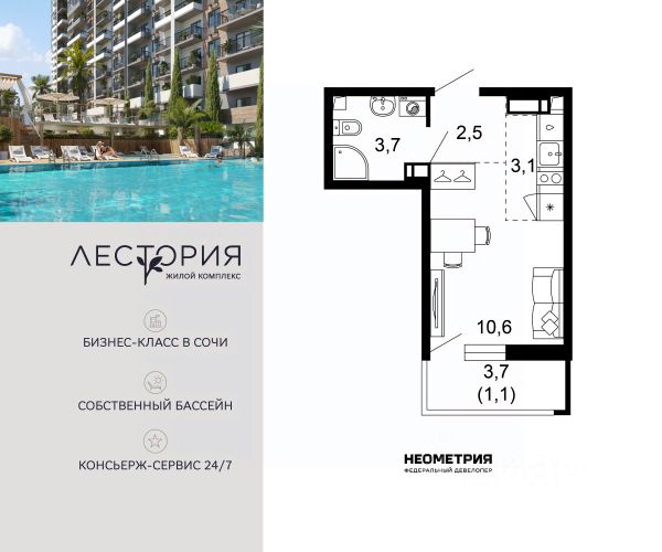 Продается квартира в ЖК "Флора" от федерального девелопера "Неометрия". Это жилой комплекс комфорт-класса в самом зеленом районе Сочи. При проектировании постарались максимально сохранить окружающую флору и фауну. Теплое море, горы, целебные источники, река, близость заповедника все это уже рядом с вами.