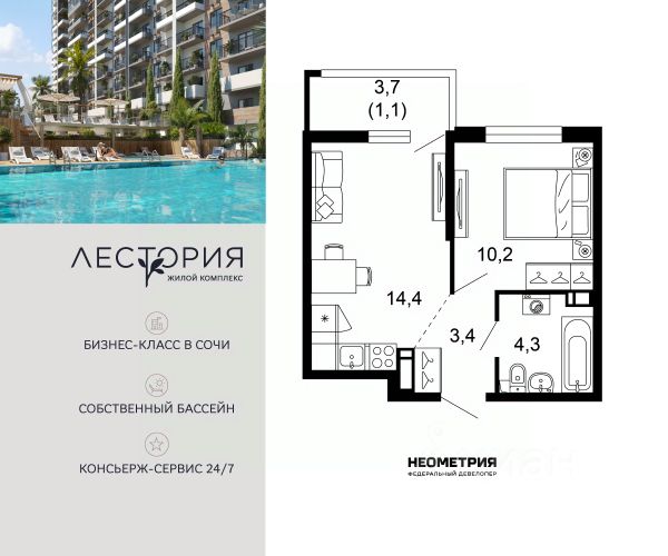 Продается квартира в жилом комплексе бизнес-класса "Лестория". В составе ЖК предусмотрена собственная аквазона площадью 473 квадратных метра с двумя подогреваемыми бассейнами, что соответствуют стандартам бизнес-класса. Аквазона объединяет взрослый и детский бассейны. В welcome-zone к услугам посетителей шезлонги и все необходимые принадлежности. Раздевалки с душевыми комнатами, инфракрасная сауна — здесь все предусмотрено для комфортного отдыха и полного расслабления. Для водного комплекса продуман отдельный вход, оборудованный системой контроля и управления доступом (СКУД). Аквазона только часть уникальной инфраструктуры "Лестории", которая включает в себя также благоустроенную территорию с пятьюдесятью функциональными зонами для прогулок, отдыха и занятий спортом, видовые террасы на крышах для отдыха, работы и встреч с друзьями, а также пространство набережной Кудепсты с шезлонгами и перголами. Жилой комплекс "Лестория" состоит из шести домов высотностью от 15 до 17 этажей, окружённых зеленым массивом национального парка. На придомовой территории для жителей предусмотрены закрытые дворы с круглосуточным видеонаблюдением, активити-центр для детей и подростков, тихие зоны для отдыха и медитации. На крышах домов будут созданы зеленые террасы для наслаждения прекрасными видами на море и горы. В проекте предусмотрены разные варианты отделки квартир под потребности покупателей. Тем, кто хочет воплотить в жизнь собственные интерьерные задумки, подойдут квартиры без ремонта. Для комфортной жизни и отдыха в комплексе будет работать круглосуточный консьерж-сервис уровня 5*, который с легкостью закроет все ежедневные потребности: от заказа продуктов и встречи гостей в аэропорту до выгула и дрессировки питомца. К услугам жителей ЖК "Лестория" — собственная управляющая компания, для инвесторов предоставляются услуги доверительного управления. #27OEzu