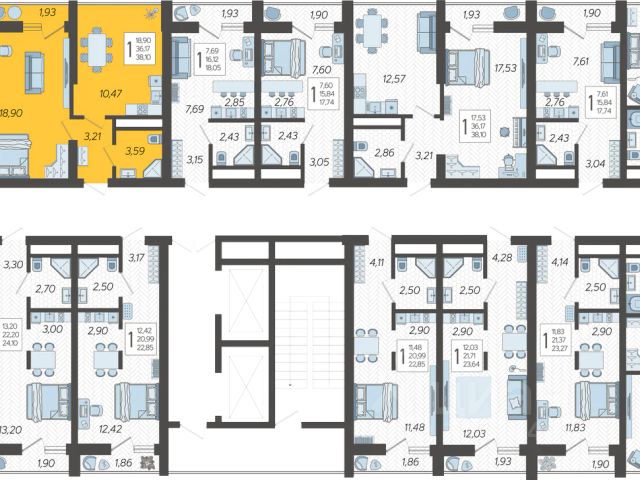 • ✓ В базе Циан 17 1-комнатных квартир на 16 этаже в микрорайоне Бытха в городе Сочи