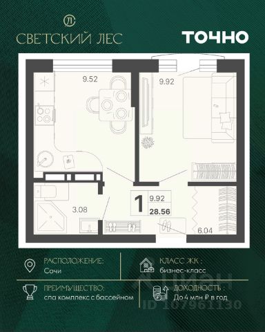 Жилой комплекс состоит из 7 домов переменной этажности от 11 до 20 этажей. В холлах и вестибюлях выполнена дизайнерская отделка, установлены скоростные лифты. На 1 этажах расположены зоны ожидания и колясочные. В проекте предложено множество планировочных решений: в наличии квартиры классического типа. Сдаются они с подчистовой отделкой, панорамными окнами и высотой потолков в 3м. Некоторые квартиры имеют вид на лесной массив и горы. На закрытой территории комплекса выполнен ландшафтный дизайн, установлены безопасные детские площадки для детей всех возрастов, места для отдыха, зоны барбекю с беседками, спортивные площадки, установлен открытый бассейн. На территории также оборудована своя набережная протяженностью в 1,2км. Для владельцев автомобилей предусмотрен отдельный многоуровневый паркинг. Жилой комплекс располагается в активно развивающемся Хостинском районе. В нескольких минутах ходьбы находятся поликлиники, школы, детские сады, кинотеатр, магазины и кафе. До центра Сочи можно добраться за 30 минут транспортом.
