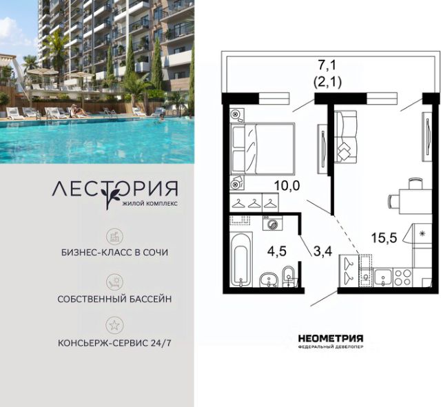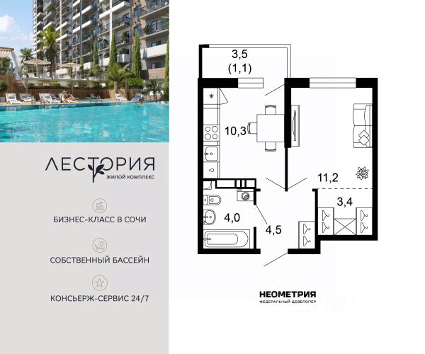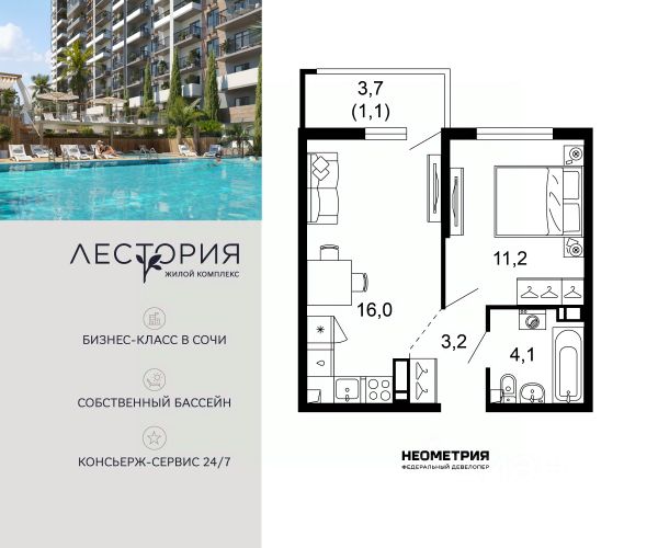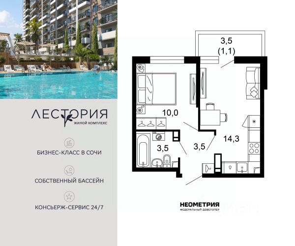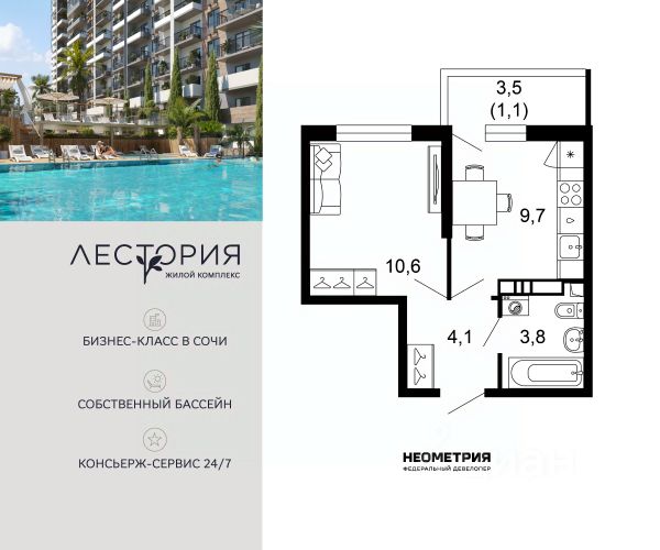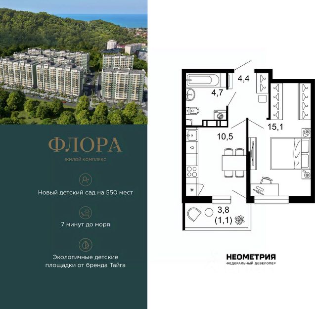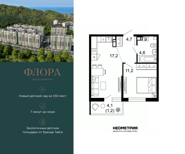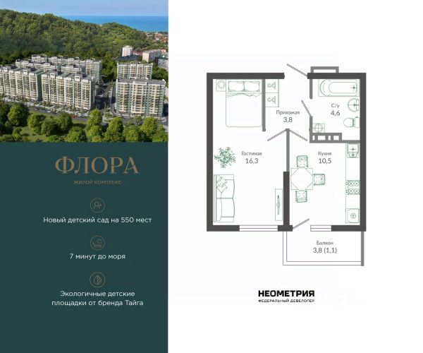 Продается квартира в ЖК "Флора" от федерального девелопера "Неометрия". Это жилой комплекс комфорт-класса в самом зеленом районе Сочи. При проектировании постарались максимально сохранить окружающую флору и фауну. Теплое море, горы, целебные источники, река, близость заповедника все это уже рядом с вами.