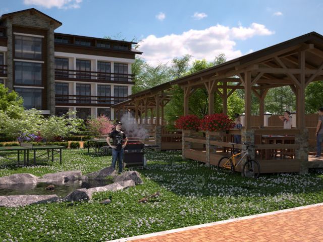 Комплекс апартаментов представлен всесезонным курортным отелем бизнес-класса из 10 домов высотой 3 и 4 этажа. Здания выполнены по монолитной технологии с комбинированными фасадами. Внутри предусмотрен круглосуточный ресепшен для комфорта жильцов. В проекте представлены апартаменты площадью от 19 до 45 кв. м с мастер-спальнями, каминами, панорамными окнами и потолками 3,15 м. Все квартиры имеют балконы с видом на горы. Помещения передаются без отделки с возможностью дозаказать комплектацию с мягкой мебелью. Предусмотрена возможность объединения соседних апартаментов. На территории действует концепция "город в городе". Территория в 1,5 га закрыта от автомобилей, обустроены зоны барбекю, летний кинотеатр, подогреваемый бассейн, спа-центр, воркаут-зона, конференц-зал, ресторан европейской кухни, пекарня и кафе, а также детская комната с няней. Жителям доступен прокат спортивного инвентаря. Комплекс расположен в Сочи, в селе Эстосадок, в окружении горных хребтов Аибга и Псехако, рядом с рекой Мзымта. В 10 минутах пешком находятся ж/д станция Эсто-Садок и подъемник, а в 5 минут транспортом — Казино Сочи, рестораны, кафе и картинг. До аэропорта Сочи — 45 минут транспортом, до центра Сочи — 1 час 30 минут. Купить 1-комнатную квартиру на 4 этаже в Сочи.