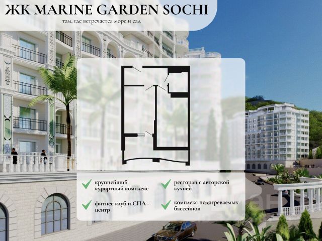 Добро пожаловать в высочайший класс роскошной жизни с потрясающей архитектурой и очарованием прекрасной эпохи "Belle Epoque". Гостиничный комплекс "Marine Garden Sochi" Hotels & Resort - место, которое станет частью вашей истории. "Marine Garden Sochi" Hotels & Resort - крупнейший курортный комплекс, расположенный между живописным зеленым массивом и панорамным морским простором района Хоста города Сочи в уединённой парковой зоне площадью 8 га с собственной культурной и развлекательной инфраструктурой. Рестораны с авторской кухней, бары, комплекс подогреваемых бассейнов и высококлассный СПА, центр красоты и здоровья, фитнес-клуб, спортивные площадки и теннисные корты, пространства для торжеств и мероприятий любого масштаба, бизнес-центр и конференц-залы с современным оборудованием, тематический экопарк, детский центр и развлекательные площадки, шикарные номера в европейском стиле с классическим декором, отделкой из благородных материалов и современной элегантной мебелью. Здесь все продумано так, чтобы круглогодично создавать незабываемые впечатления и атмосферу настоящего волшебства