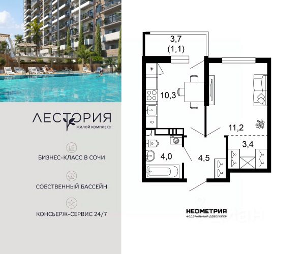 Проект включает в себя 7 жилых корпусов высотой 12 этажей. В подъездах выполнена дизайнерская отделка в светлой цветовой гамме с яркими акцентами, для удобства жителей в местах общего пользования предусмотрена навигация. В каждой секции предусмотрены помещения для хранения велосипедов и колясок с обустроенным местом для мойки колес и лап домашних животных. Покупателям в ЖК предложено множество планировочных решений: в наличии квартиры, как классического типа, так и европланировки. Из окон открываются виды на реку и горы. Квартиры сдаются в чистовой отделке. В состав комплекса входит школа на 2 000 мест, детский сад на 550 мест и фитнес-центр. На первых этажах расположены коммерческие помещения. Во дворах установлены детские площадки, спортивные комплексы и деревянные беседки для отдыха. По периметру ЖК ведется видеонаблюдение, к которому можно подключится online при помощи специального приложения для мобильных устройств. Рядом с комплексом располагается благоустроенная набережная реки Кудепста. Комплекс расположен в микрорайоне Кудепста города Сочи. В окрестностях района находится большая плантация пробкового дуба. В пешей доступности есть школы, детские сады, магазины, медучреждения, салоны красоты и места для отдыха. Комплекс расположен в 1,9 км от моря, и 7 км до Сочи.