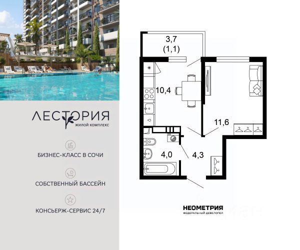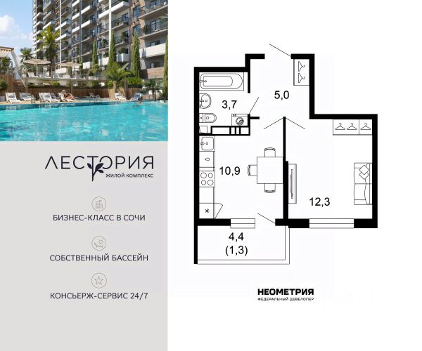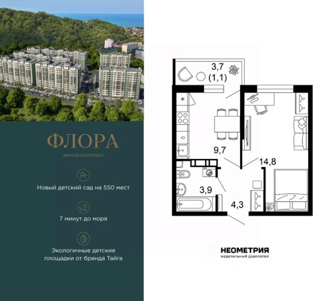 Продаётся 1-комнатная квартира в сданном доме (Литер 6), срок сдачи: III-кв. 2024, общей площадью 34.3 кв.м., на 5 этаже. Жилой комплекс "Летний" расположен в ущелье реки Кудепста. В пешей минутной доступности детские сады и школы. Удобный выезд к железнодорожному вокзалу и аэропорту. За 15 минут можно доехать до Олимпийского парка. В 7 минутах езды на автомобиле находится парк-заповедник Тисо-Самшитовая Роща. Море - в пешей доступности. В районе развитая инфраструктура. В шаговой доступности находятся действующие детские сады, школы, поликлиники и торговые центры. Строительство ведётся с использованием эскроу счетов в соответствии с 214 ФЗ.