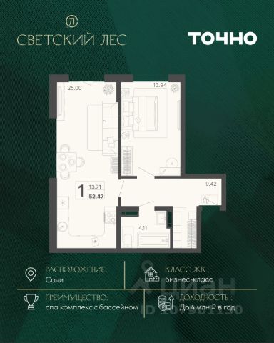 ЖК "Светский лес" — эксклюзивный жилой проект бизнес-класса в Сочи. Это остров цивилизации и технологий в окружении дикой природы национального парка с богатой инфраструктурой, наполненной различными сценариями премиального отдыха и жизни. Общественное пространство жилого комплекса включает в себя прогулочные зоны, спа-комплекс с круглогодичным бассейном, детские и спортивные площадки, велодорожки, собственную набережную реки Сочи, торговую галерею с супермаркетами и ресторанами, а также инновационную школу на 1510 мест и детский сад на 510 мест. Квартира в ЖК "Светский лес" — идеальный вариант как для жизни у моря, так и для инвестиций. Удобный сервис доверительного управления позволит легко зарабатывать на недвижимости в ЖК "Светский лес" до 4 млн. руб. в год.*