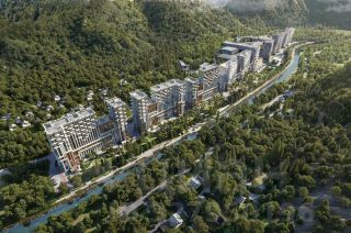 Жилой комплекс состоит из 7 домов переменной этажности от 11 до 20 этажей. В холлах и вестибюлях выполнена дизайнерская отделка, установлены скоростные лифты. На 1 этажах расположены зоны ожидания и колясочные. В проекте предложено множество планировочных решений: в наличии квартиры классического типа. Сдаются они с подчистовой отделкой, панорамными окнами и высотой потолков в 3м. Некоторые квартиры имеют вид на лесной массив и горы. На закрытой территории комплекса выполнен ландшафтный дизайн, установлены безопасные детские площадки для детей всех возрастов, места для отдыха, зоны барбекю с беседками, спортивные площадки, установлен открытый бассейн. На территории также оборудована своя набережная протяженностью в 1,2км. Для владельцев автомобилей предусмотрен отдельный многоуровневый паркинг. Жилой комплекс располагается в активно развивающемся Хостинском районе. В нескольких минутах ходьбы находятся поликлиники, школы, детские сады, кинотеатр, магазины и кафе. До центра Сочи можно добраться за 30 минут транспортом.