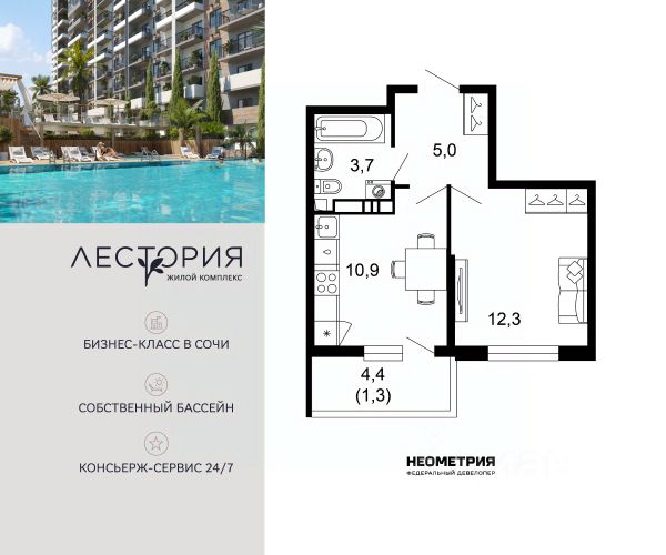 Продаётся 1-комнатная квартира в сданном доме (Литер 3), срок сдачи: I-кв. 2024, общей площадью 40.32 кв.м., на 7 этаже. Жилой комплекс "Летний" расположен в ущелье реки Кудепста. В пешей минутной доступности детские сады и школы. Удобный выезд к железнодорожному вокзалу и аэропорту. За 15 минут можно доехать до Олимпийского парка. В 7 минутах езды на автомобиле находится парк-заповедник Тисо-Самшитовая Роща. Море - в пешей доступности. В районе развитая инфраструктура. В шаговой доступности находятся действующие детские сады, школы, поликлиники и торговые центры. Строительство ведётся с использованием эскроу счетов в соответствии с 214 ФЗ.