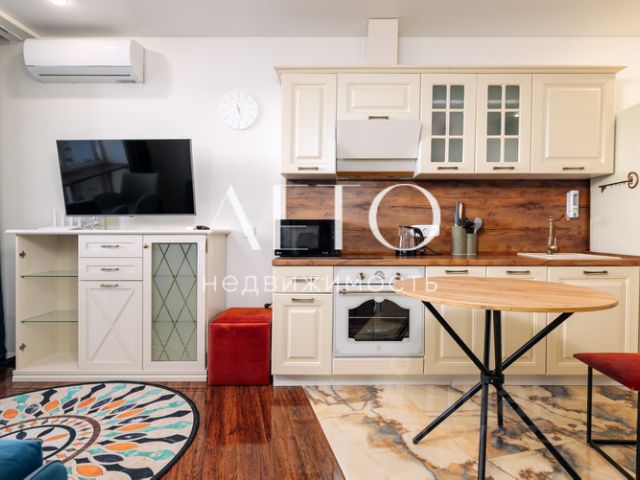 Объект в базе - V68159 Продается полноценная 1-комнатная квартира с ремонтом в Сириусе. До моря 5 минут. Вид на море. Дизайнерский ремонт. Делали для себя.Не сдавалась. Большие панорамные окна. Отдельно спальня и кухня-гостиная. Есть управляющая компания, которая занимается сдачей с полным комплексом услуг.