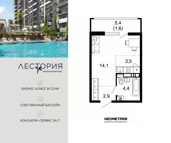 Продаётся 1-комнатная квартира в сданном доме (Литер 5), срок сдачи: III-кв. 2024, общей площадью 38.8 кв.м., на 8 этаже. Жилой комплекс "Летний" расположен в ущелье реки Кудепста. В пешей минутной доступности детские сады и школы. Удобный выезд к железнодорожному вокзалу и аэропорту. За 15 минут можно доехать до Олимпийского парка. В 7 минутах езды на автомобиле находится парк-заповедник Тисо-Самшитовая Роща. Море - в пешей доступности. В районе развитая инфраструктура. В шаговой доступности находятся действующие детские сады, школы, поликлиники и торговые центры. Строительство ведётся с использованием эскроу счетов в соответствии с 214 ФЗ.