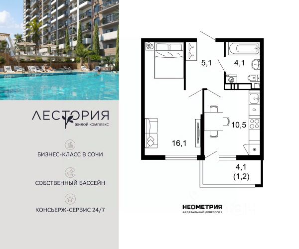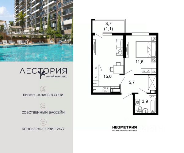 Продаётся 1-комнатная квартира в сданном доме (Литер 5), срок сдачи: III-кв. 2024, общей площадью 38.8 кв.м., на 8 этаже. Жилой комплекс "Летний" расположен в ущелье реки Кудепста. В пешей минутной доступности детские сады и школы. Удобный выезд к железнодорожному вокзалу и аэропорту. За 15 минут можно доехать до Олимпийского парка. В 7 минутах езды на автомобиле находится парк-заповедник Тисо-Самшитовая Роща. Море - в пешей доступности. В районе развитая инфраструктура. В шаговой доступности находятся действующие детские сады, школы, поликлиники и торговые центры. Строительство ведётся с использованием эскроу счетов в соответствии с 214 ФЗ.