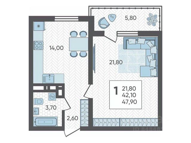 В продаже 1-комнатная квартира площадью 48, расположенная Литер 5 жилого комплекса комфорт+ класса "Горный квартал". Комплекс от девелопера AVA находится в Сочи, Хостинского района, в 15 минутах езды от центра города.