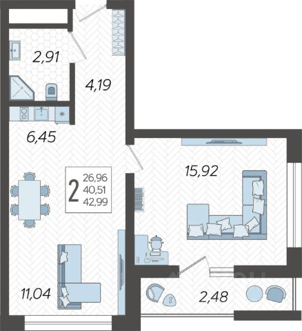 Квартиры европланировок с двумя балконами, гардеробными и видами на несколько сторон света,