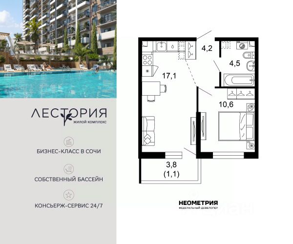 Проект включает в себя 7 жилых корпусов высотой 12 этажей. В подъездах выполнена дизайнерская отделка в светлой цветовой гамме с яркими акцентами, для удобства жителей в местах общего пользования предусмотрена навигация. В каждой секции предусмотрены помещения для хранения велосипедов и колясок с обустроенным местом для мойки колес и лап домашних животных. Покупателям в ЖК предложено множество планировочных решений: в наличии квартиры, как классического типа, так и европланировки. Из окон открываются виды на реку и горы. Квартиры сдаются без отделки. В состав комплекса входит школа на 2 000 мест, детский сад на 550 мест и фитнес-центр. На первых этажах расположены коммерческие помещения. Во дворах установлены детские площадки, спортивные комплексы и деревянные беседки для отдыха. По периметру ЖК ведется видеонаблюдение, к которому можно подключится online при помощи специального приложения для мобильных устройств. Рядом с комплексом располагается благоустроенная набережная реки Кудепста. Комплекс расположен в микрорайоне Кудепста города Сочи. В окрестностях района находится большая плантация пробкового дуба. В пешей доступности есть школы, детские сады, магазины, медучреждения, салоны красоты и места для отдыха. Комплекс расположен в 1,9 км от моря, и 7 км до Сочи. Цены на евродвушку в новостройке в районе Адлерский в городе Сочи.