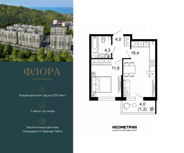 Продается квартира в ЖК "Флора" от федерального девелопера "Неометрия". Это жилой комплекс комфорт-класса в самом зеленом районе Сочи. При проектировании постарались максимально сохранить окружающую флору и фауну. Теплое море, горы, целебные источники, река, близость заповедника все это уже рядом с вами.