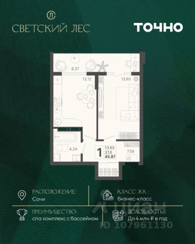 Жилой комплекс состоит из 7 домов переменной этажности от 11 до 20 этажей. В холлах и вестибюлях выполнена дизайнерская отделка, установлены скоростные лифты. На 1 этажах расположены зоны ожидания и колясочные. В проекте предложено множество планировочных решений: в наличии квартиры классического типа. Сдаются они с подчистовой отделкой, панорамными окнами и высотой потолков в 3м. Некоторые квартиры имеют вид на лесной массив и горы. На закрытой территории комплекса выполнен ландшафтный дизайн, установлены безопасные детские площадки для детей всех возрастов, места для отдыха, зоны барбекю с беседками, спортивные площадки, установлен открытый бассейн. На территории также оборудована своя набережная протяженностью в 1,2км. Для владельцев автомобилей предусмотрен отдельный многоуровневый паркинг. Жилой комплекс располагается в активно развивающемся Хостинском районе. В нескольких минутах ходьбы находятся поликлиники, школы, детские сады, кинотеатр, магазины и кафе. До центра Сочи можно добраться за 30 минут транспортом.