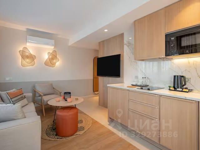 Комплекс апартаментов элитного класса представлен 8-этажным зданием, возведенным по монолитной технологии с вентилируемым фасадом из керамогранита. В доме установлены пассажирский и грузовой лифты, предусмотрены дизайнерские холлы. В проекте предлагаются апартаменты площадью от 56 до 380 кв. м с панорамными окнами и высотой потолков 3,15 м. Из окон открываются виды окружающий ландшафт. Отделка выполнена в чистовом варианте с применением премиальных материалов — кварцвинилового ламината, керамогранита, МДФ-панелей и декоративных покрытий. В ванных комнатах установлена сантехника высокого класса: душевая система, подвесной унитаз, раковины, смесители и полотенцесушители. Проект реализован в уникальной концепции, сочетающей жилой формат и инфраструктуру премиального отеля. Это единственный отель в Сочи с брендовыми ресторанами авторской и высокой кухни. Для резидентов создана единая экосистема с развитым сервисом и зонами отдыха. На территории находится крупнейший в городе открытый бассейн. Для владельцев авто оборудованы стоянки. Комплекс расположен в Адлере — престижной прибрежной зоне с развитой инфраструктурой и природным окружением. В 510 минутах пешком находятся кафе, рестораны, магазины, аптеки, фитнес-клубы, парки и пляж на побережье Черного моря. Вблизи протекает река Мзымта. Дорога до аэропорта Сочи занимает 10 минут транспортом, до федеральной территории Сириус — 15 минут, а до центра города можно добраться за 40 минут транспортом. Продается 1-комнатная квартира в микрорайоне Адлер Центр в городе Сочи.