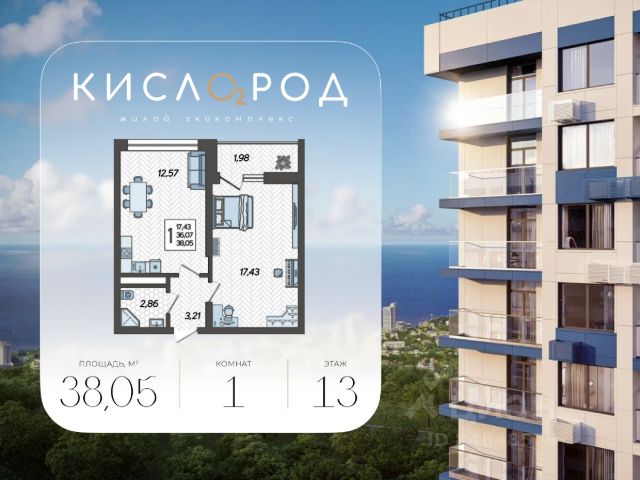 В продаже 1-комнатная квартира, площадью 38.14, расположенная Литер 10 жилого комплекса бизнес-класса "Кислород". Комплекс от девелопера AVA находится в Сочи, на северном склоне горы Бытха, в 7 минутах езды от центра города. Отличная транспортная доступность Остановка автобусов и маршрутных такси - 6 минут пешком, Курортный проспект и пляжи - 10 минут на авто, Эко-парк "Быхта" и туристические тропы - 5 минут пешком, Школы, детские сады, поликлиники, супермаркеты - 5-10 минут на авто, Ж/Д вокзал и центр города - 15 минут на транспорте, Аэропорт - 30 минут на авто. Аккуратный облик домов Жилой комплекс состоит из 15 корпусов высотой 19 этажей. Светлые фасады с голубыми акцентами и архитектурной подсветкой лучше отражают солнце и визуально не перегружают застройку. Благодаря расположению на склоне, из квартир открываются широкие панорамы, в том числе на море и эко-парк. Безопасный двор В комплексе благоустроенная территория организована как безопасное и многофункциональное пространство, где найдется место каждому. Дворы закрыты от автомобилей и прохожих, поэтому здесь тихо и безопасно для детей. На территории предусмотрены игровые площадки для детей разных возрастов, спортивное поле для футбола и баскетбола, а также уличные тренажеры - заниматься спортом можно рядом с домом, без поездок в фитнес-клуб. Для спокойного отдыха предусмотрены зоны со скамейками и прогулочные дорожки по всей территории комплекса. Собственный парк В 5 минутах ходьбы от домов будет благоустроен экологический парк "Бытха" с прогулочными, спортивными, образовательными и экстремальными маршрутами, а также детскими и спортивными площадками. Там можно интересно проводить время с детьми и друзьями, выходить на пробежку или тренировку, гулять и заниматься с питомцем. Преимущества Квартиры европланировок с двумя балконами, гардеробными и видами на несколько сторон света, Подземная, многоуровневая и наземная парковки для автомобилей жителей и гостей, Комфортно не только отдыхать, но и полноценно жить всей семьей: детские сады и школы в 5 минутах, удобная дорогая до города, магазины и сервисы поблизости. Продается 1-комнатная квартира в микрорайоне Бытха в городе Сочи.