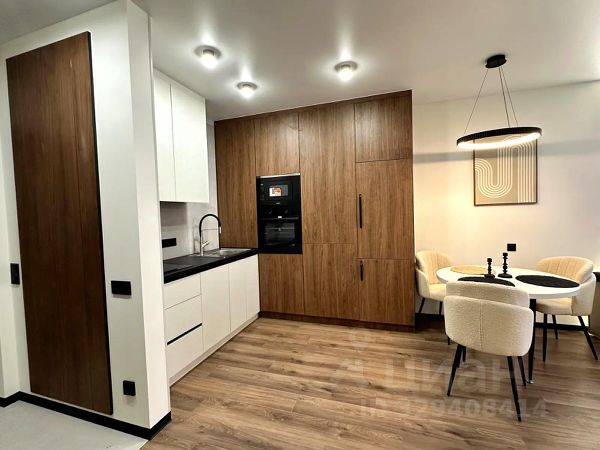 в квартире просторная-кухня гостиная с кухонным гарнитуром,