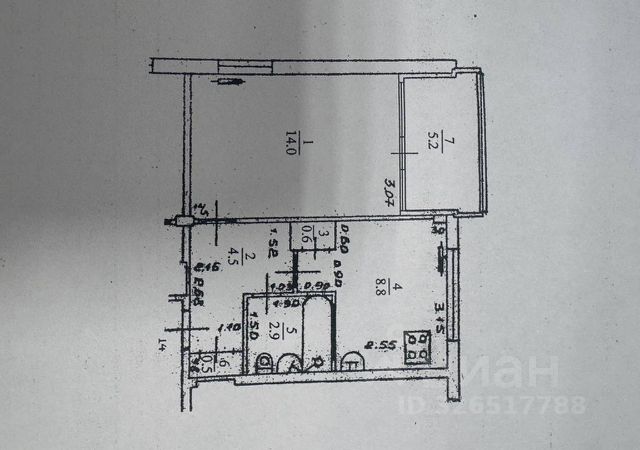 Расположение комнат: Спальня 15м2, прихожая 2.5м2, кухня 8м2, санузел 3.5м2 + лоджия 3м2. Центральное отопление.