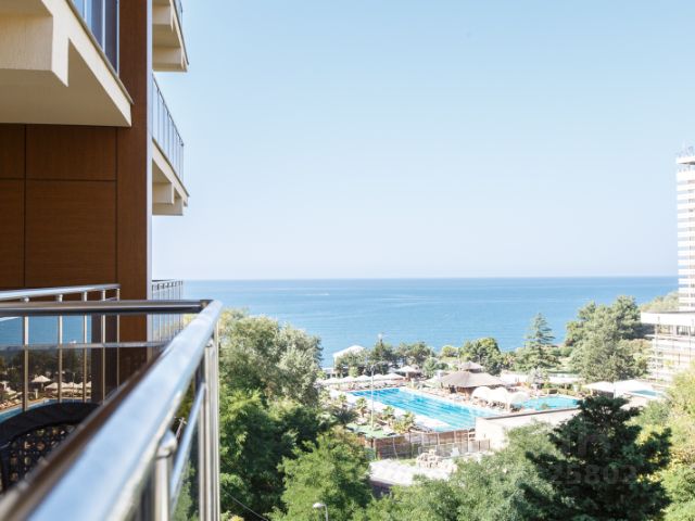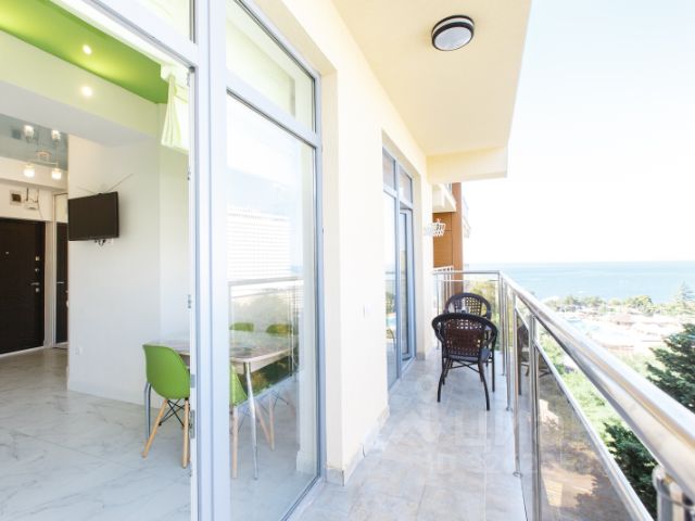 Море и центральная набережная с благоустроенными пляжами, пешком 5-7 минут спокойным шагом.