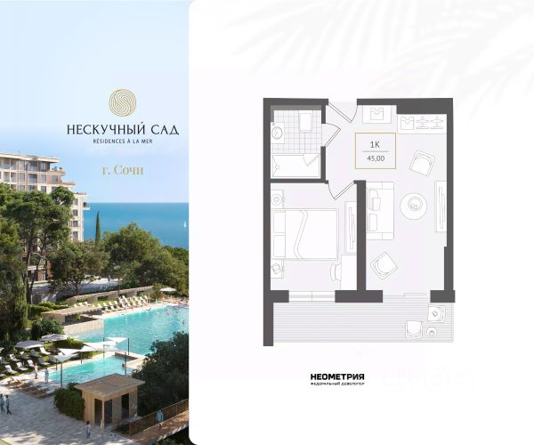 Проект представляет собой 2 дома высотой в 10 этажей. В облицовке стен корпусов используется энергоэффективный навесной вентилируемый фасад. Во всех домах выполнена дизайнерская отделка входных групп и установлены современные лифты. В проекте предложено множество планировочных решений: в наличии апартаменты, как классического типа, так и европланировки. Сдаются они без отделки и высотой потолков от 2.7 метров. Из окон номеров гостиничного комплекса "Нескучный сад" открывается неповторимый вид на горные вершины и Черное море. На внутренней закрытой территории проекта выполнен ландшафтный дизайн. Инфраструктура комплекса включает в себя: зону отдыха с просторным бассейном на открытом воздухе, современный SPA-комплекс с широким спектром косметических и оздоровительных процедур, просторный тренажерный зал с оборудованием, отвечающим высоким мировым стандартам, круглосуточный ресепшн и услуги консьерж-сервиса для решения любых задач 24/7, бутики известных брендов и ресторан. Для детей предусмотрен Детский центр с разнообразными развивающими и развлекательными программами. На территории комплекса спроектирован подземный паркинг с профессиональными парковщиками и видеонаблюдением. Проект расположен в Хостинском районе. Инфраструктура развита, в пешей доступности: магазины, кафе, банкоматы, медицинские учреждения, школы, детские сады. За 15 минут транспортом можно добраться до международного аэропорта Сочи, 30 минут до центральной набережной, 45 минут до курорта Красная Поляна.