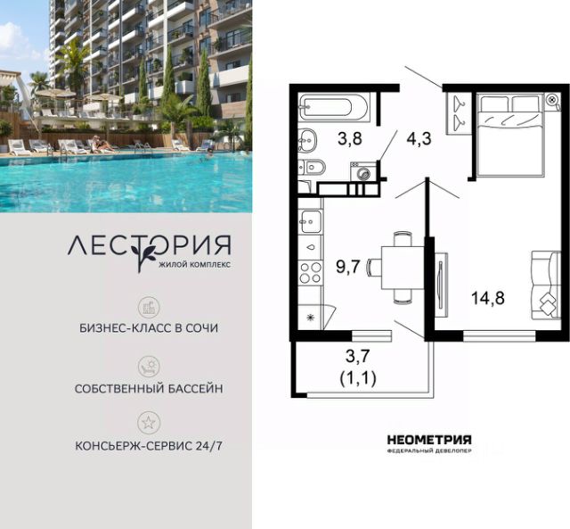 Продаются 1-комнатные апартаменты в сданном доме (Корпус 1), срок сдачи: IV-кв. 2022, общей площадью 20.3 кв.м., на 8 этаже. Апартаментный комплекс "МОНЕ" - это объект который притягивает к себе покупателей с совершенно разными потребностями, он удовлетворяет запрос даже самого требовательного клиента.Локация - является ключевым моментом для проживания, отдыха и инвестиций. Объект расположен в 4-х километрах от аэропорта, неподалеку от улицы Ленина, которая связывает Олимпийский парк, Красную поляну и центральный район города Сочи. Вам и гостям города максимально удобно добираться до апартаментов любым удобным способом.