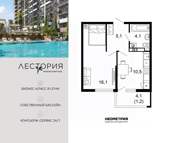 Продаётся 1-комнатная квартира в сданном доме (Литер 5), срок сдачи: III-кв. 2024, общей площадью 41.1 кв.м., на 12 этаже. Жилой комплекс "Летний" расположен в ущелье реки Кудепста. В пешей минутной доступности детские сады и школы. Удобный выезд к железнодорожному вокзалу и аэропорту. За 15 минут можно доехать до Олимпийского парка. В 7 минутах езды на автомобиле находится парк-заповедник Тисо-Самшитовая Роща. Море - в пешей доступности. В районе развитая инфраструктура. В шаговой доступности находятся действующие детские сады, школы, поликлиники и торговые центры. Строительство ведётся с использованием эскроу счетов в соответствии с 214 ФЗ.
