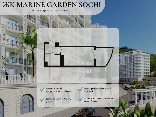 Продается квартира в жилом комплексе бизнес-класса "Лестория". В составе ЖК предусмотрена собственная аквазона площадью 473 квадратных метра с двумя подогреваемыми бассейнами, что соответствуют стандартам бизнес-класса. Аквазона объединяет взрослый и детский бассейны. В welcome-zone к услугам посетителей шезлонги и все необходимые принадлежности. Раздевалки с душевыми комнатами, инфракрасная сауна — здесь все предусмотрено для комфортного отдыха и полного расслабления. Для водного комплекса продуман отдельный вход, оборудованный системой контроля и управления доступом (СКУД). Аквазона только часть уникальной инфраструктуры "Лестории", которая включает в себя также благоустроенную территорию с пятьюдесятью функциональными зонами для прогулок, отдыха и занятий спортом, видовые террасы на крышах для отдыха, работы и встреч с друзьями, а также пространство набережной Кудепсты с шезлонгами и перголами. Жилой комплекс "Лестория" состоит из шести домов высотностью от 15 до 17 этажей, окружённых зеленым массивом национального парка. На придомовой территории для жителей предусмотрены закрытые дворы с круглосуточным видеонаблюдением, активити-центр для детей и подростков, тихие зоны для отдыха и медитации. На крышах домов будут созданы зеленые террасы для наслаждения прекрасными видами на море и горы. В проекте предусмотрены разные варианты отделки квартир под потребности покупателей. Тем, кто хочет воплотить в жизнь собственные интерьерные задумки, подойдут квартиры без ремонта. Для комфортной жизни и отдыха в комплексе будет работать круглосуточный консьерж-сервис уровня 5*, который с легкостью закроет все ежедневные потребности: от заказа продуктов и встречи гостей в аэропорту до выгула и дрессировки питомца. К услугам жителей ЖК "Лестория" — собственная управляющая компания, для инвесторов предоставляются услуги доверительного управления. #Z6AvZ5