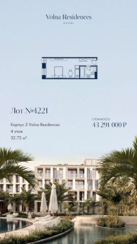 VOLNA Residence — приватные резиденции у моря с гарантированным пассивным доходом Надёжный инвестиционный инструмент в Сочи — с рассрочкой и высокой доходностью Вкладывая в VOLNA Residence, вы получаете не просто апартаменты на первой береговой линии, а устойчивый источник дохода, комфортную старость и возможность передать ликвидный актив детям. Это идеальный вариант для тех, кто хочет сохранить и приумножить капитал без лишних забот. Локация, которая работает на вас — 8 минут до аэропорта Сочи — 12 минут до Олимпийского парка — 30 минут до Красной Поляны О проекте: — Первая береговая линия — 3 малоэтажных корпуса с панорамными видами на море — Номера с балконами: от стандартов до пентхаусов — Отделка из камня, дерева и мрамора — Готовая управляющая компания и персональный батлер — Уникальная архитектура и благоустройство от европейских бюро — Срок окупаемости от 6 лет Комплекс с инфраструктурой курорта премиум-класса: — Собственный пляж — 5 бассейнов — СПА и термы от Thermarium (4500 м²) — 10 ресторанов, медицинский центр, спортивные залы, амфитеатр и кинотеатр — Детские площадки и зоны барбекю Почему инвесторы выбирают VOLNA: — Доходность от 5 млн ₽ в год — Рассрочка до 90% — без ипотек и банков — Гарантированный пассивный доход — Стабильный актив в рублёвой зоне — Управление под ключ — без хлопот и поездок Важно: Спрос на аренду здесь стабилен круглый год. Конкуренции не боимся — комплекс уникален по наполнению и локации. Все апартаменты сдаются с отделкой и готовы к заселению или сдаче в аренду. Жить у моря. Получать доход. Спать спокойно. Оставьте заявку — расскажем, как вложить надёжно и без лишнего риска.